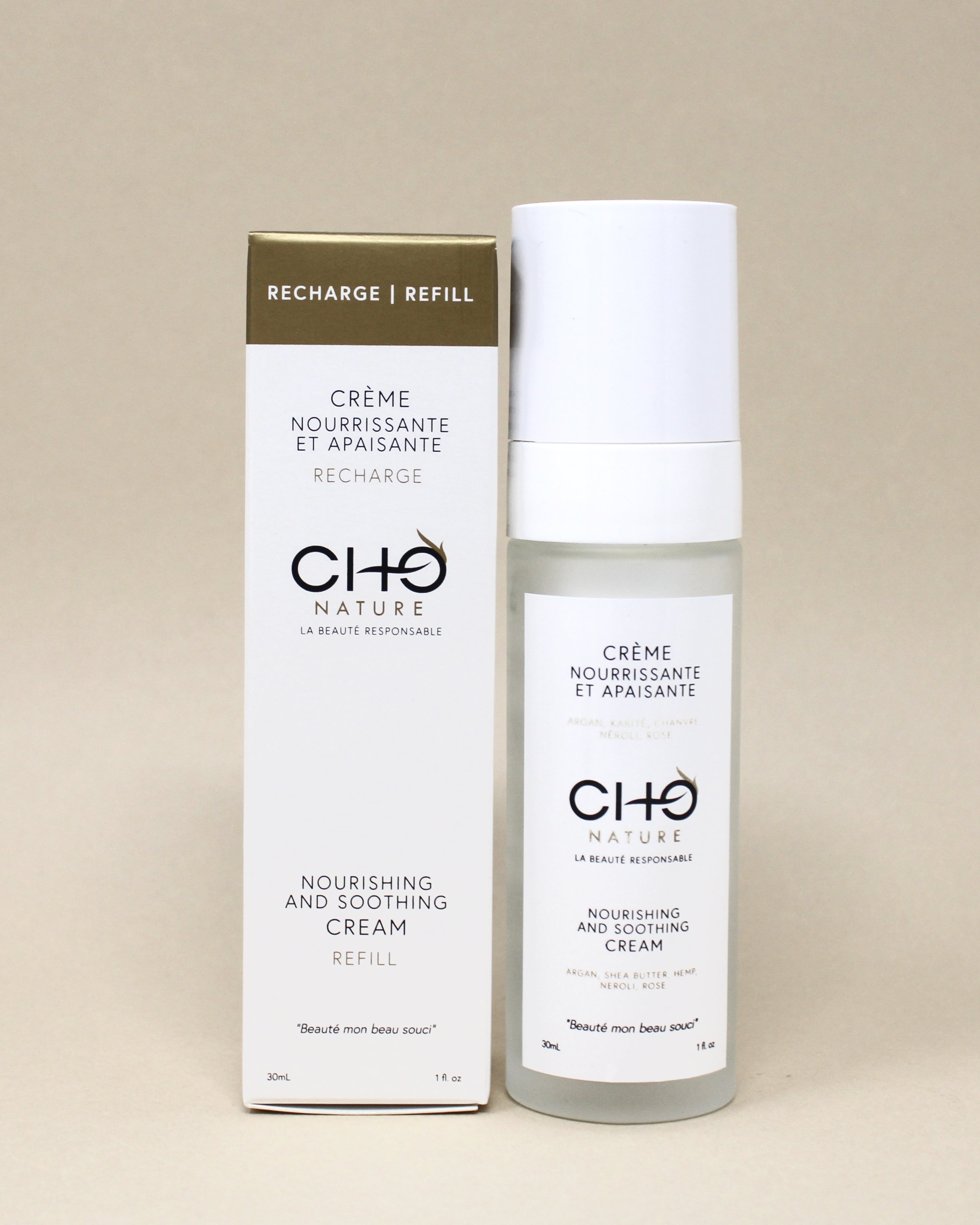 Flacon rechargeable : une fois votre crème terminée, dévissez la pompe, jetez la partie plastique dans la poubelle de tri et gardez le flacon en verre. Vissez votre nouvelle recharge de crème sur le flacon en verre et réutilisez la normalement.